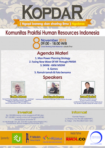 Sebelumnya, sejumlah para aktivis Human Resources dari berbagai industri di berbagai daerah dan provinsi berkumpul mengadakan Ngopi Bareng Sharing Ilmu alias Ngobras di Jakarta.