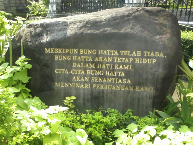 Demikian kalimat yang terukir di atas batu sebelum peziarah masuk ke makam Proklamator Kemerdekaan RI yang bernama lengkap Mohammad Hatta di TPU Tanah Kusir, Bintaro Raya, Kebayoran lama, Jakarta Selatan.