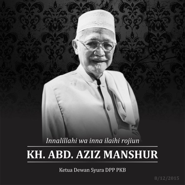 "Inna lillahi wa inna ilaihi raji'un, tlh berpulang ke rahmatullah Romo KH Abdul Aziz Mansur (Dewan Syura DPP PKB), smg husnul khotimah. Amin," sebut Menteri Desa PDT-T yang juga politisi PKB, Marwan Jafar di akun â€@marwan_jafar.