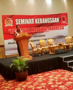 "Kekisruhan baik sosial, politk, dan agama yang terjadi sekarang ini karena memudarnya nilai-nilai Pancasila di masyarakat," katanya.