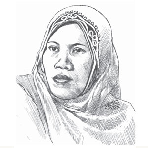 Kenapa Anda begitu seÂtia dengan suami, padahal hidup dalam teror dan harus menghidupi kebutuhan anak-anak sendiri lagi?Mungkin karena dia nggak pernah marah sama saya, ngÂgak pernah bertengkar. Nggak pernah mukul. Nggak pernah selingkuh. Pokoknya selama ini saya lihat seperti itu, ke depan saya nggak tahu. Mungkin mau kawin beberapa orang lagi. Kita nggak tahu.