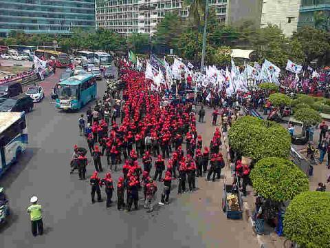 "20 ribu buruh akan kembali aksi turun ke jalan menolak PHK dan menolak upah murah," kata Presiden Konfedrasi Serikat Pekerja Indonesia (KSPI) Said Iqbal kepada redaksi, Senin (1/2).