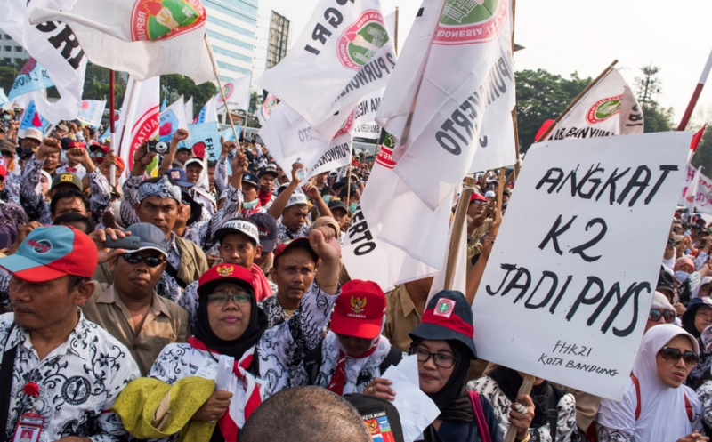 Di saat bersamaan, demonstrasi ini juga diikuti aksi mogok guru honorer di seluruh daerah guna memberikan warning kepada pemerintah karena kerap diberi harapan palsu.