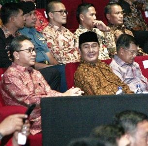 Selain itu hadir Ketua DKPP Jimly Ashiddiqie, Ketua KPU Husni Kamil Manik, Menteri PAN dan Reformasi Birokrasi Yuddy Chrisnandi, serta jajaran Bawaslu Pusat dan Daerah.
