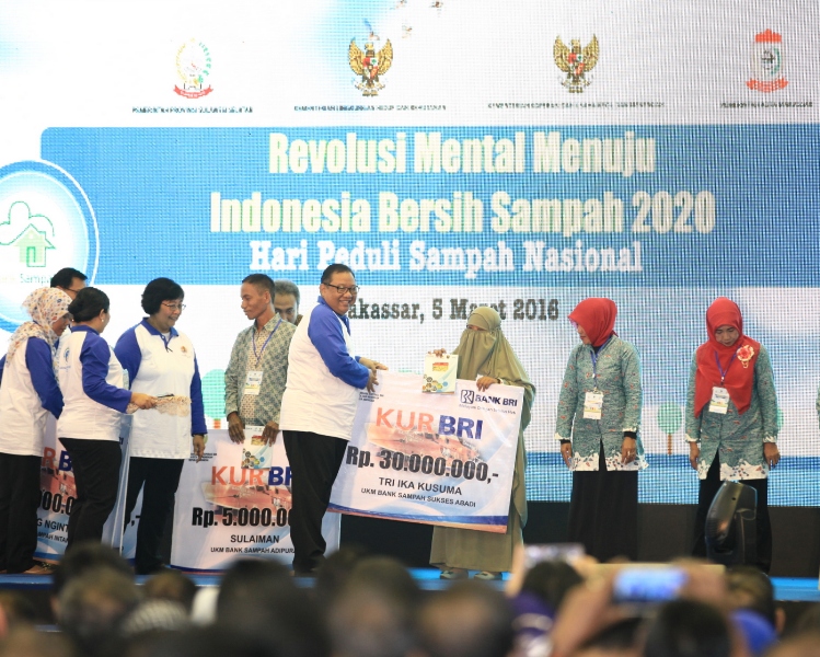 Pada kesempatan tersebut, Menkop dan UKM Puspayoga didampingi Menteri LHK Siti Nurbaya dan Direktur Utama BRI Asmawi Syam menyerahkan izin usaha mikro dan kecil (IUMK) dan KUR kepada 8 unit bank sampah dan disaksikan Wakil Presiden RI HM Jusuf Kalla. Hadir pula Menteri Dalam Negeri (Mendagri) Tjahyo Kumolo.