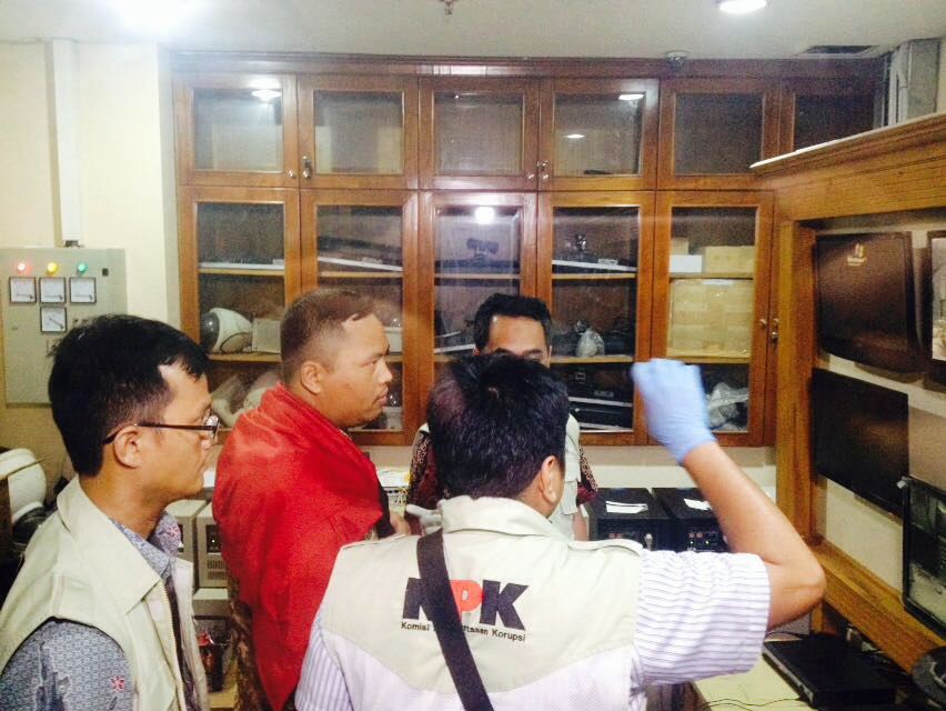 Di lantai 5 gedung DPRD ruang perundang-undangan, tampak lima orang penyidik mengenakan rompi putih bertuliskan KPK di bagian punggung masuk dikawal dua anggota Brimob bersenjata laras panjang. Hingga pukul 22.30 WIB tadi, mereka masih berada di dalam ruangan tersebut. Pintu ruangan yang tadinya disegel dengan garis merah hitam KPK Line sudah tidak dipasang dan penyidik menutup pintu itu selama penggeledahan.