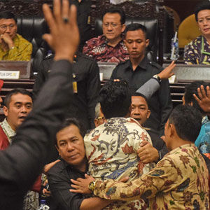 "Saya ingin menyampaikan surat yang sudah ditandatangani 60 lebih anggota. Bagaimana pimpinan sekarang sudah kehilangan legitimasi karena melanggar kode etik," teriaknya.