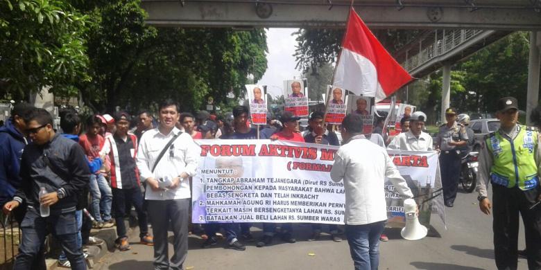 "Masih ada sengketa baik pidana dan perdata terkait lahan RS Sumber Waras di Mahkamah Agung. Kami juga meminta Mahkamah Agung untuk memberikan pernyataan resmi/klarifikasi kepada masyarakat luas melalui media bahwa lahan RS Sumber Waras masih dalam sengketa di Mahkamah Agung baik pidana maupun perdatanya," ujarnya saat orasi di depan Rumah Sakit Sumber Waras.