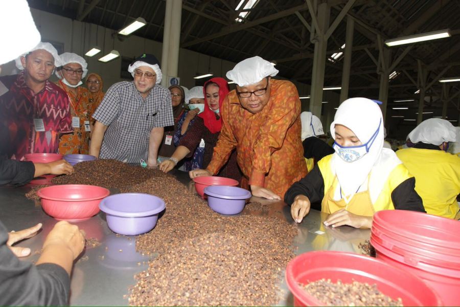Menteri Koperasi dan UKM, Puspayoga bersama Bupati Klaten, Sri Hartini dan PMA PT. ASI, Mr. Sam Filliaci meninjau pabrik pengolahan rempah-rempah di Klaten Jawa Tengah (27/4). Kemenkop UKM