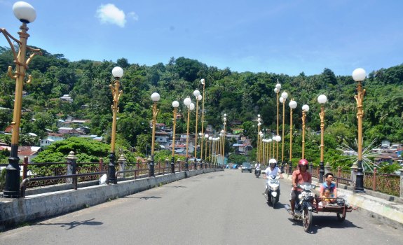 Sejumlah Kendaraan melintas di Jembatan Siti Nurbaya Kota Padang, Sumatera Barat, Kamis (28/4). Jembatan Siti Nurbaya adalah jembatan yang membentang sepanjang 156 meter yang menghubungkan pusat kota sebrang Padang, di Bangun sejak tahun 1995 dengan menghabiskan biaya sekitar Rp 19,8 Miliar dari anggaran pemerintah daerah dan pemerintah pusat. Putu Wahyu Rama/RM
