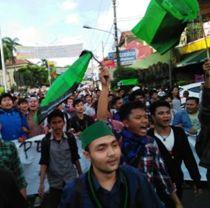 Sesudah melaporkan Saut, ratusan massa HMI Ciputat melakukan orasi di depan kampus UIN Syarif Hidayatullah Jakarta.
