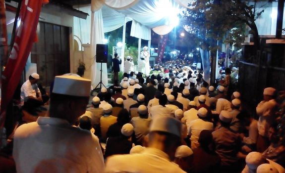 Habib Jindan memberikan tausiyah dalam rangka haul lima tahun wafatnya KH Zainuddin MZ di depan ratusan jemaah Masjid Nurul Fajri di Gang Haji Aom, Gandaria, Jakarta Selatan, Selasa (10/5) malam. Tangguh Sipria Riang/RMOL