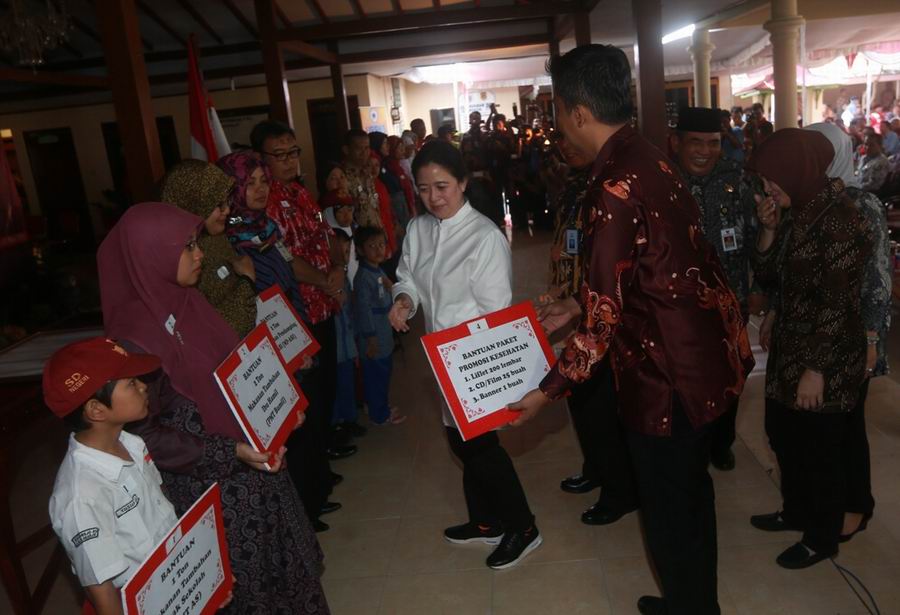 Dalam kesempatan ini, Puan juga menyerahkan bantuan. Bantuan dari Kementerian Sosial berupa 2 unit Mobil dan 1 unit Sepeda Motor dan 250 orang sasaran penerima PKH. Sementara bantaun dari Kemendikbud: berupa Dana Alokasi Khusus Bantuan Operasional PAUD sebesar Rp 12.888.000, 50 buah Goody Bag untuk Pembinaan Pendidikan Keluarga dan1 paket Kurikulum PAUD.