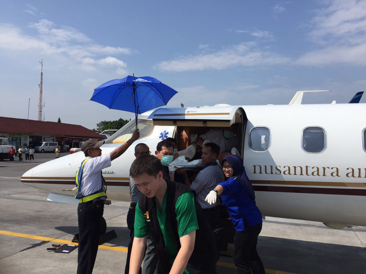 Pesawat ambulan udara tersebut mendarat di Bandara Adisucipto sekitar pukul 13.15 WIB dan dengan mobil ambulan langsung dibawa ke RS Dr.Sardjito. "Kondisinya stabil selama dalam perjalanan dan kami pantau terus menerus di dalam pesawat selama terbang," kata Graz.