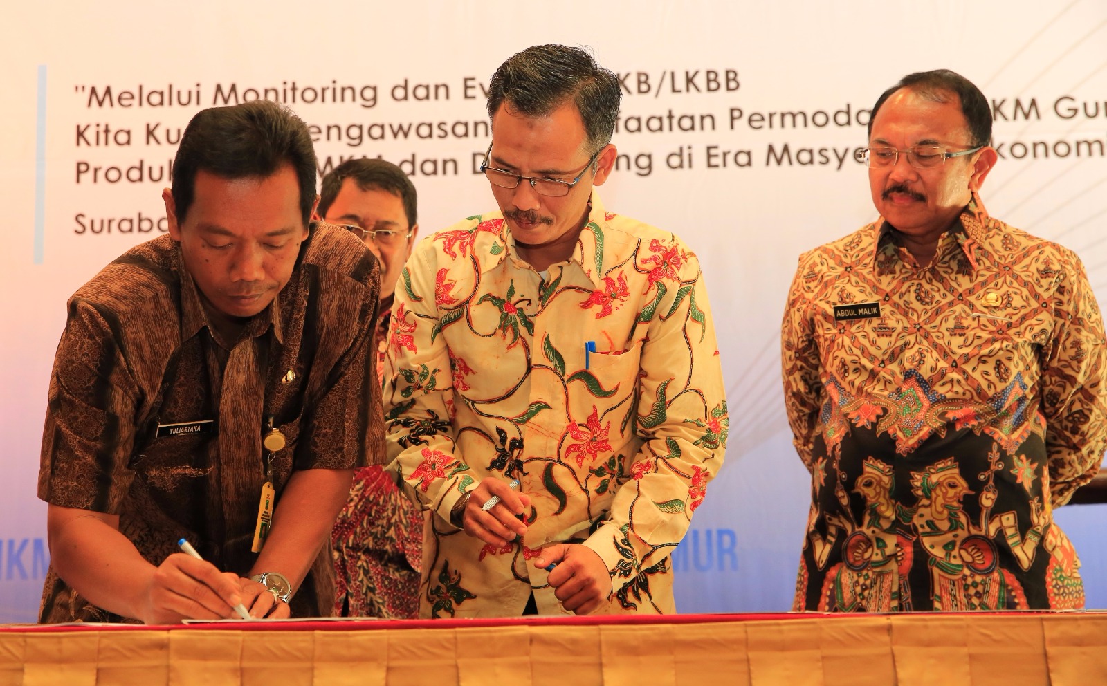 Kepala UPTD Pengelola Dana Bergulir Kab Malang, I Gusti Putu Yuliartana bersama Direktur Pengembangan Usaha LPDB, Adi Trisnojuwono menandatangani nota kesepahaman tentang Penyaluran Dana Bergulir antara LPDB dengan UPTD Pengelola Dana Bergulir Kabupaten Malang. Kemenkop UKM