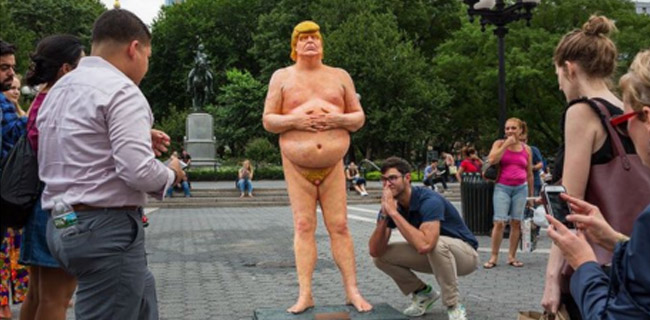 rmol news logo Sebuah patung telanjang calon presiden dari Partai Republik Donald Trump tanpa testis diamankan oleh petugas taman pada hari Kamis setelah menyebabkan kegemparan di New York Union Square.