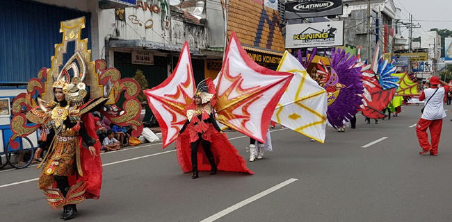 Defile kostum ikut meramaikan karnaval yang digelar di Blitar, Jawa Timur, Minggu (28/8). Karnaval digelar dalam rangka perayaan HUT ke-71 Kemerdekaan Republik Indonesia. RMOL