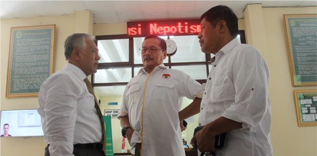 Pelaksana Tugas ketua umum Partai Golkar Joeslin Nasution (tengah) bersama Pelaksana Tugas Sekjen Partai Golkar Suseno Bayu Aji (kanan) berbincang dengan kuasa hukumnya Yan Juanda sebelum sidang lanjutan gugatan yang diajukan Joeslin Nasution kepada Kementerian Hukum dan HAM di Pengadilan Tata Usaha Negara, Jakarta, Kamis (1/9). Joeslin Nasution mengugat Kemenkumham terkait SK Kemenkumham nomor M.HH-04.AH.11.01 tahun 2016 tentang pengesahan personalia pengurusan dewan pimpinan pusat partai Golkar masa bakti 2014-2019. Indra Hardi/RM