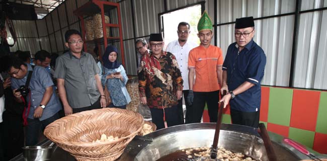 . Ketua MPR RI Zulkifli Hasan menyempatkan diri berkunjung ke Pusat Oleh-oleh Ummi Aufa Hakim di Bukittinggi, Sumatera Barat, Sabtu (17/9). Bukan sekadar berkunjung, Zulkifli juga bahkan ikut menggoreng keripik singkong di dapur toko.
