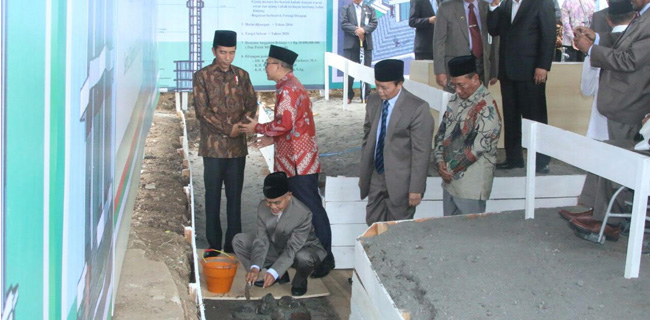 groundbreaking pembangunan menara Masjid Gontor. Rencananya, menara itu akan menjulang setinggi 90 meter.