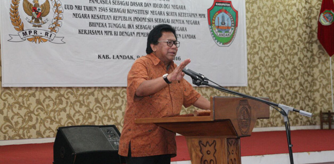 Pernyataan itu disampaikan Wakil Ketua MPR RI Oesman Sapta (Oso) saat menyampaikan Sosialisasi Empat Pilar MPR dihadapan masyarakat Kabupaten Landak, Provinsi Kalimantan Barat, di Aula Kabupaten Landak, Rabu (9/11). Ikut hadir memberikan materi sosialisasi Pimpinan Fraksi PPP MPR Irgan Chairul Mahfiz.