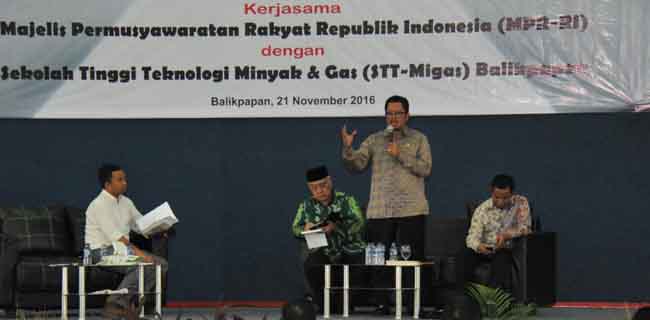 "Saya telah delapan kali menyampaikan pengantar sosialisasi Empat Pilar MPR," katanya ketika berbicara di depan mahasiswa STT Migas Balikpapan, Senin (21/11). Ini adalah sosialisasi Empat Pilar terakhir dalam roadshow Mahyudin di Kalimantan Timur.