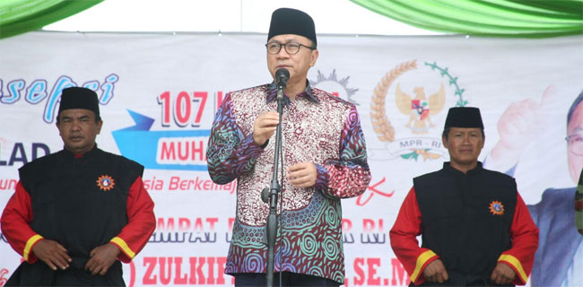 Demikian disampaikan Ketua MPR RI Zulkifi Hasan saat memberikan Taushiyah Kebangsaan di hadapan ribuan kader, anggota dan simpatisan Muhammadiyah serta masyarakat umum se-Lampung Timur dalam rangka memperingati Milad ke 107 H/104 M Muhammadiyah di lapangan Sukadana, Lampung Timur, Selasa (29/11).