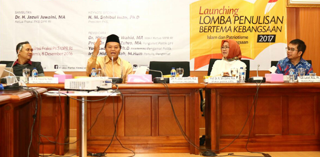 Demikian disampaikan Hidayat saat menjadi pembicara dalam diskusi 'Refleksi Kebangsaan' dalam rangka Launching Lomba Penulisan Bertema Kebangsaan 2017 "Islam dan Patriotisme Kebangsaan" di Ruang Aspirasi PKS DPR, Komplek Parlemen, Senayan, Jakarta, Kamis (8/12).