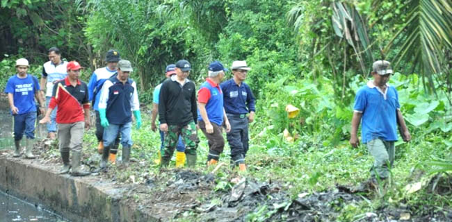Walikota Palembang Harnojoyo memimpin langsung kegiatan gotong royong membersihkan anak Sungai Bayas, Jalan Rimbo Kemuning Lorong Ogan RW 02 Kelurahan Ario Kemuning, Kecamatan Kemuning Palembang, Minggu (7/5). RMOL Sumsel