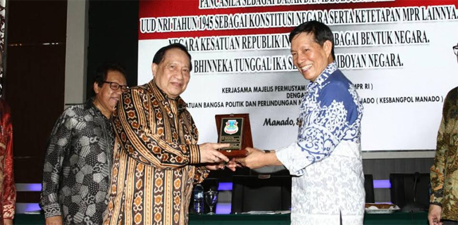 Begitu tegas Wakil Ketua MPR Letjen TNI (purn) E.E. Mangindaan saat membuka sosialisasi Empat Pilar MPR RI di Gedung Serbaguna Kantor Walikota Manado, Sulawesi Utara, Kamis (8/6).