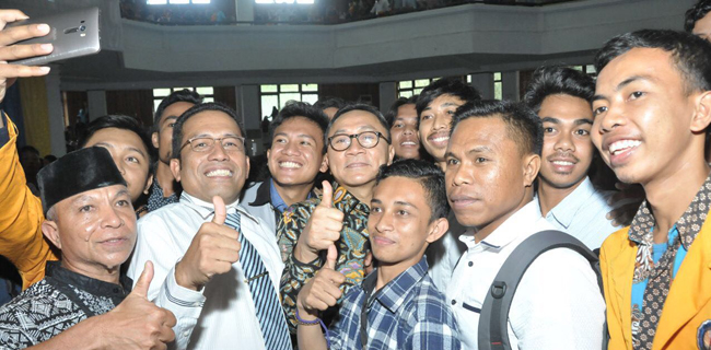 "Inilah tugas generasi muda Universitas Haluoleo. Sulawesi Tenggara memiliki kekayaan alam yang sangat kaya, tapi apakah kekayaan itu sudah dinkimati masyarakat sesuai dengan UUD NRI Tahun 1945 pasal 33. Apakah kesejahteraan sudah merata," ujar Zulkifli.