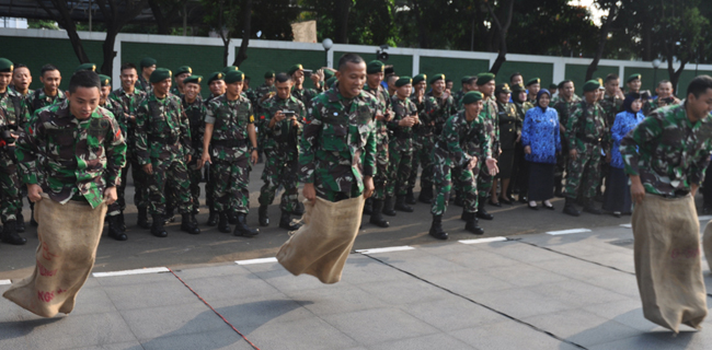 Usai melaksanakan upacara bendera dalam rangka memperingati HUT ke-72 Kemerdekaan RI, prajurit dan ASN Markas Kostrad TNI ADA menggelar berbagai kegiatan lomba-lomba, Gambir, Jakarta Pusat, Kamis (17/8). Berbagai jenis lomba yang digelar seperti lomba balap karung, lomba memecahkan air di plastik, lomba makan kerupuk, lomba masukkan pensil ke botol dan panco. Penerangan Kostrad/RMOL
