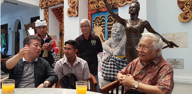 Presiden Asosiasi Wartawan Korea (AWK) Jung Kyu Sung menyampaikan apresiasinya pada koleksi lukisan klasik dan kontemporer milik Maestro Nyoman Gunarsa saat mengunjungi Nyoman Gunarsa Museum di Klungkung, Bali, Minggu (27/8). Rombongan AWK berkunjung ke Bali dalam rangka kunjungan persahabatan bekerjasama dengan Persatuan Wartawan Indonesia (PWI). RMOL