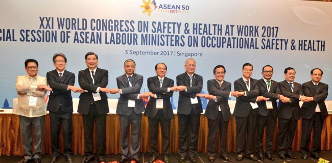 Labour Ministers Meeting on Occupational Safety and Health at the XXI World Congress On Safety and Health at Work 2017 atau Pertemuan Menteri-Menteri Tenaga Kerja ASEAN dalam Keselamatan dan Kesehatan Kerja (K3) Ke-21 yang diadakan di Singapura pada, Minggu (3/9) petang waktu Singapura.