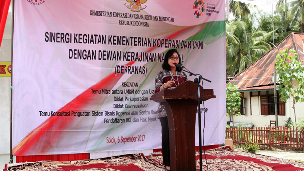 Demikian disampaikan Bintang Puspayoga Ketua bidang Manajemen Usaha Dekranas, saat membacakan sambutan Ketua Umum Dekranas Mufidah Jusuf Kalla, yang sekaligus membuka acara Sinergitas Kementerian Koperasi dan UKM dengan Dekranas, yang berlangsung di Nagari Panyakalan, Kabupaten Solok, Rabu (6/9).