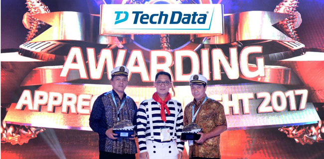 Dari kiri: President Director PT Mitra Integrasi Informatika Sjafril Effendi, Product Director PT Tech Data Advanced Solutions Indonesia Trisno Notonegoro, dan President Director PT Karlin Mastrindo Fendrianto Hie dalam acara Discovery Cruise dalam ajang penghargaan Tech Data Advanced Solutions Indonesia di Jakarta, Selasa (26/9).