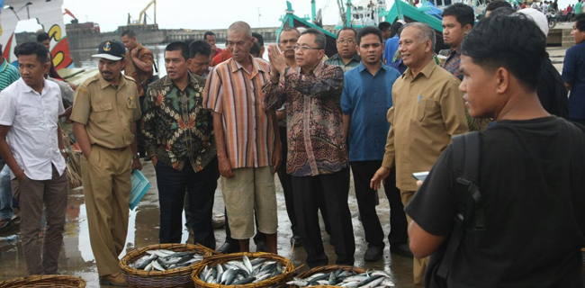 Kedatangan Zulkifli Hasan disambut Ketua Asosiasi Pedagang Ikan, Suherman, dan Koordinator Komunitas Nelayan Aceh, Abu Bakar.