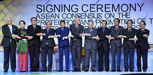 Dokumen yang berjudul “ASEAN Consensus on the Promotion and Protection of the Rights of Migrant Workers†itu ditandatangani sepuluh kepala negara ASEAN, Selasa malam (14/11).
