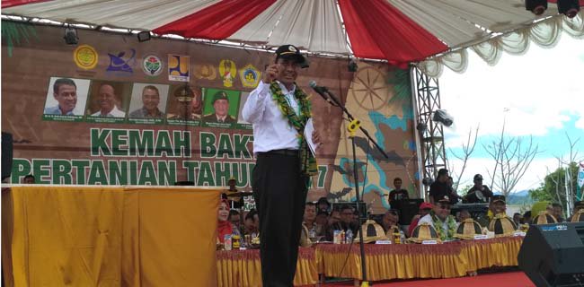 "Ayo mari kita bangun Kabupaten Soppeng. Caranya dengan kerja, kerja, dan kerja. Bangun jam lima subuh lalu kembali ke rumah jam 11 malam. Kalau perlu ibu-ibu usir suaminya jam lima subuh dan suruh kembali jam 11 malam," kata Amran saat menghadiri Kemah Bakti Pertanian di Desa Lamede, Kecamatan Marioriawa, Soppeng, Sulsel, Jumat (17/11).
