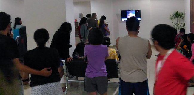 gempa terjadi. Kebanyakan mereka bertahan di lantai dasar sambil