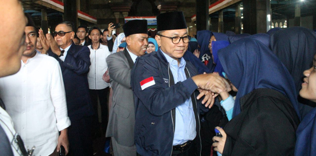 Selain para santri, ikut menyambut juga wali santri yang khusus dihadirkan untuk menyambut Zulhasan sapaan Zulkifli Hasan.