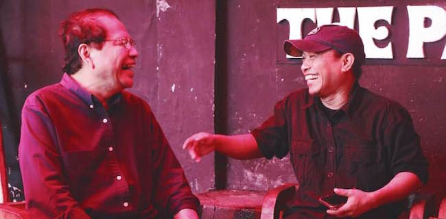Tokoh nasional DR. Rizal Ramli bersenda gurau dengan penulis novel Pidi Baiq di kafe Panas Dalam, Jalam Ambon, Bandung, Sabtu (3/3). Pidi Baiq adalah penulis kisah Dilan dan Milea yang telah difilmkan dengan judul Dilan 1990. Rizal Ramli merupakan salah seorang penonton pertama film yang telah ditonton lebih dari 6 juta orang itu. RMOL
