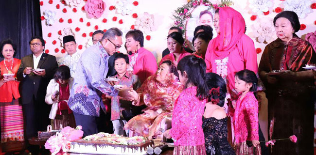 RMOL. Ketua MPR Zulkifli Hasan menghadiri rangkaian acara tasyakuran 70 tahun Ibu Sinta Nuriyah Abdurrahman Wahid di Hotel JS Luwansa Kuningan, Jakarta Selatan, Kamis (8/3).