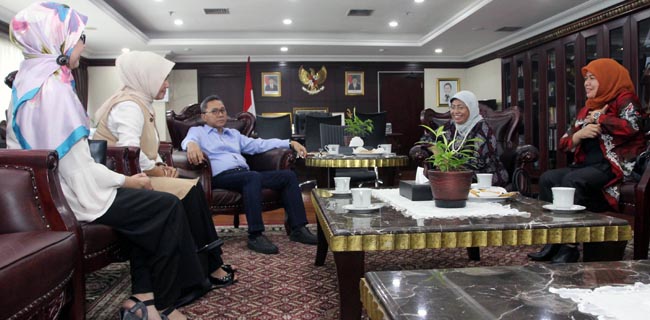 Ketua MPR Zulkiflki Hasan (tengah), menerima Ketua Koordinator Presidium Majelis Nasional Forum Alumni HMI-Wati (Forhati) Hanifah Husein (kedua dari kanan) dan sejumlah pengurus Forhati, di ruang Pimpinan MPR, Gedung Nusantara III, Kompleks Parlemen, Senayan, Jakarta, Rabu (4/4).