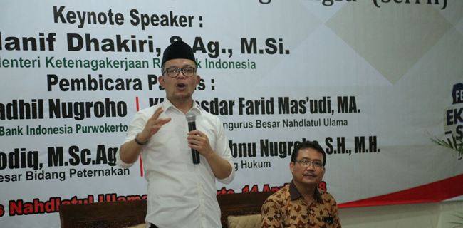 Demikian disampaikan Menteri Ketenagakerjaan RI (Menaker) M. Hanif Dhakiri saat menjadi narasumber Seminar Nasional tentang Teknologi, Kewirausahaan, dan Pemberdayaan Ekonomi di Universitas Nahdlatul Ulama (UNU) Purwokerto, Banyumas, Sabtu petang (14/4).