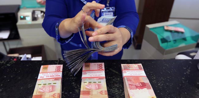 Petugas menghitung uang rupiah di Bank BUMN, Jakarta, Kamis (19/4). Range USDIDR hari Kamis Pukul 15.33 WIB, nilai tukar rupiah di pasar spot melemah 9 poin atau 0,07 persen ke level Rp13.785 per dolar AS menjelang akhir perdagangan. Patrarizki Syahputra/RM