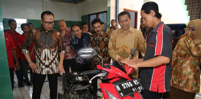 Ditempat itu, Menaker memberikan motivas ke sejumlah siswa otomotif supaya terus tekun dan meningkatkan skills agar memiliki kompetensi dan bisa mudah memasuki pasar kerja.