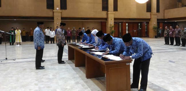 Adapun yang dilantik hari ini tiga orang untuk pejabat Eselon II.a adalah Widono, I Ketut Kariyasa dan Mohammad Ismail Wahab.