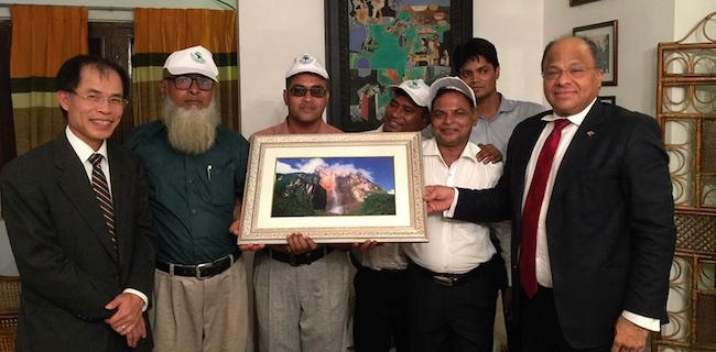 Ketua Kampanye Solidaritas Tiga Benua untuk Venezuela, M. Jahangir Khan, menerima plakat penghargaan dari Dutabesar Republik Bolivarian Venezuela, Augusto Montiel, dalam sebuah kegiatan di Konsulat Kuba di Dakha, Bangladesh (Jumat, 5/7). Plakat penghargaan itu diserahkan dalam kaitannya dengan peringatan HUT ke-207 Venezuela dan HUT ke-235 pejuang Amerika Latin, Simon Bolivar.