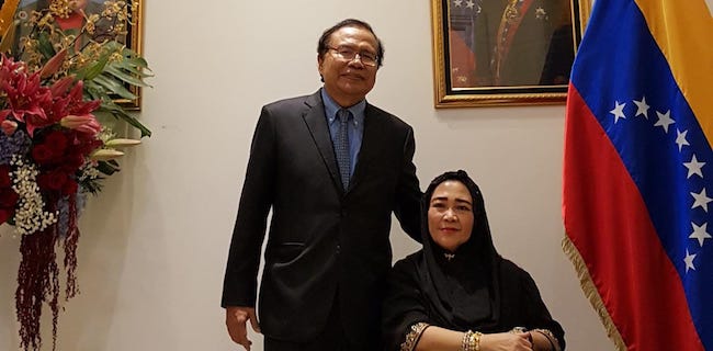 Ekonom senior Indonesia Dr. Rizal Ramli (RR) bersama Wakil Ketua Umum DPP Gerindra Rachmawati Soekarnoputri (Mbak Rachma) menghadiri peringatan kemerdekaan Republik Bolivarian Venezuela yang diselenggarakan Kedutaan Besar Republik Bolivarian Venezuela untuk Indonesia, Senin (6/8). Istimewa